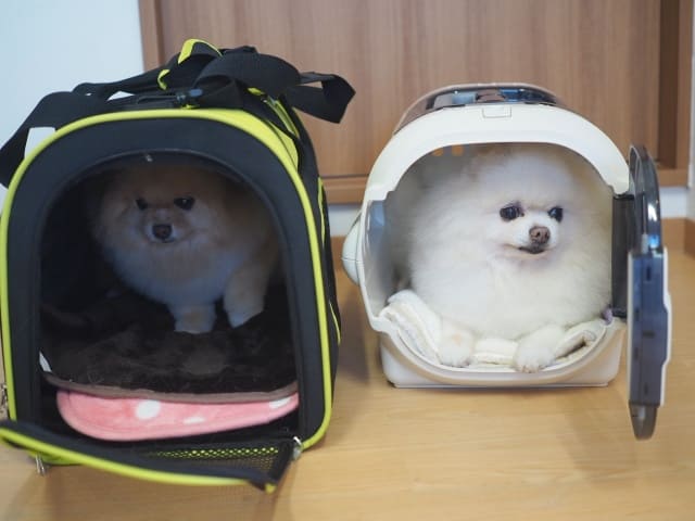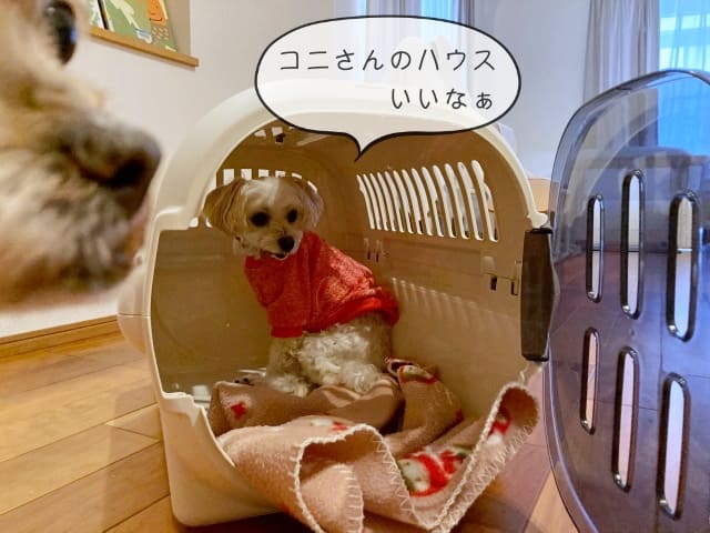 帰ってきたら、コニーの大きなキャリーケースが羨ましいのか、嬉しそうに入っていたミラ。