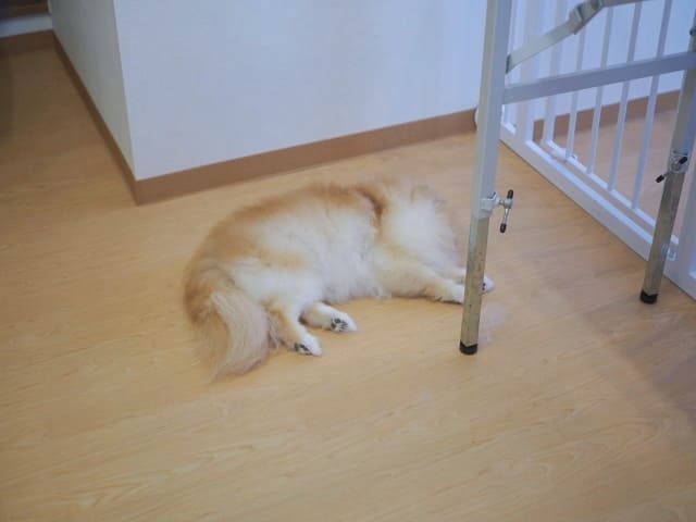 モコちゃんは、いつものように脚を投げ出して寝てました。