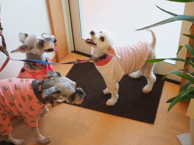 4頭一気にトリミングできないため、2頭は別のサロンさんでお願いしているそうですよ。