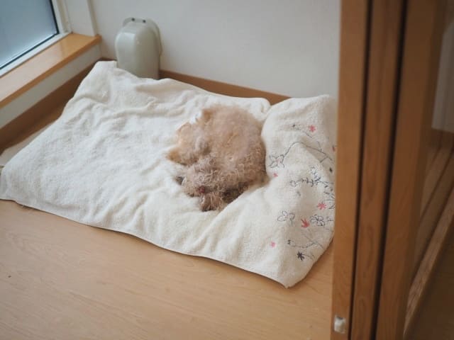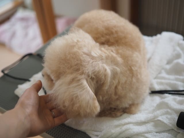 こころちゃんは、休憩中にある程度毛が乾きました。