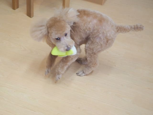 おもちゃをゲットするともう興味を失うみたいなので、一緒に追いかけてまたすぐに投げるとまたきときとに。