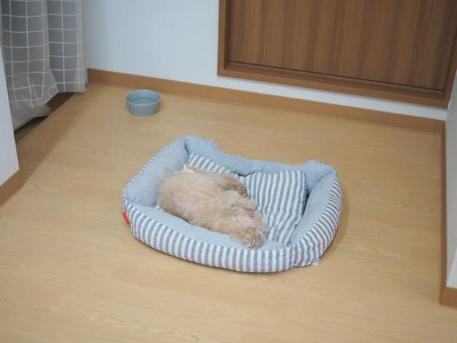 ドライヤーの風も嫌がるので、体を手早く乾かしてすぐに休憩を。