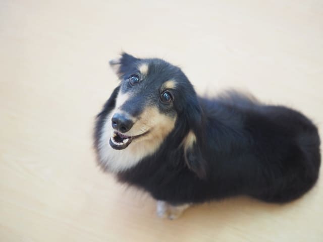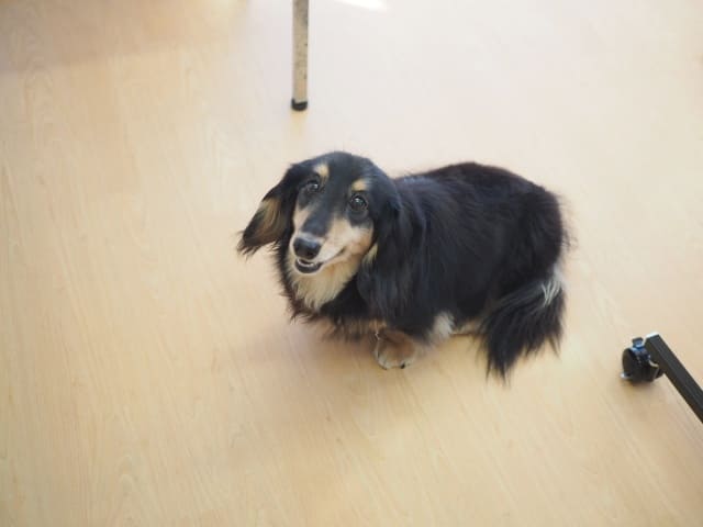 これが普通のミニチュアダックスフントなんだけど、チーズちゃんなのに頭の毛がふわふわしていないのは違和感ありありです。