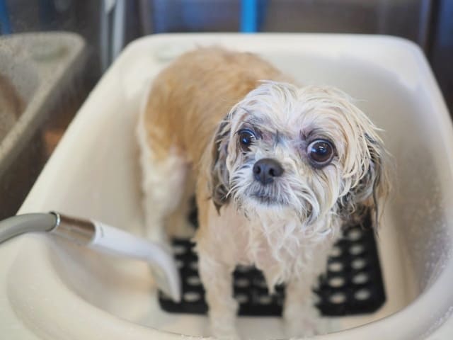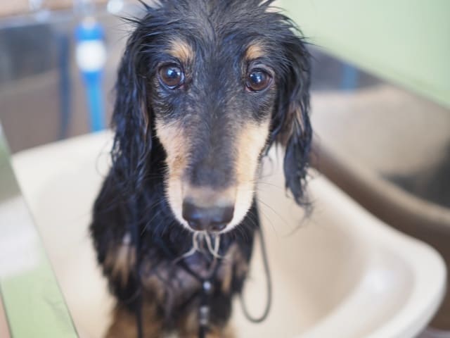 シャンプー中もブロー中も必要な時だけ立って、あとは座っていてくれました。