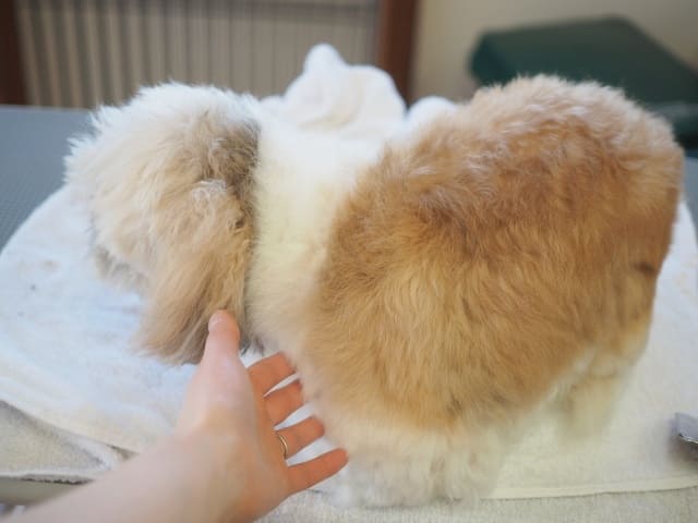前胸の方に大きな脱毛が見られましたが、ブローをすると背中の方にも二箇所小さな脱毛を見つけました。