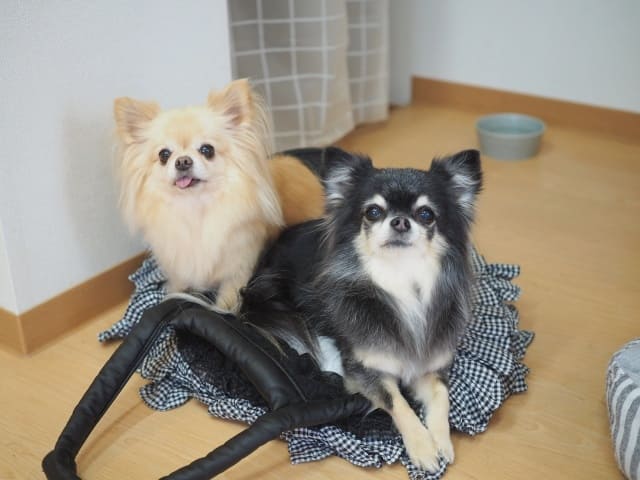 帰りそうな雰囲気を察知すると、このバッグの中に入る2頭。