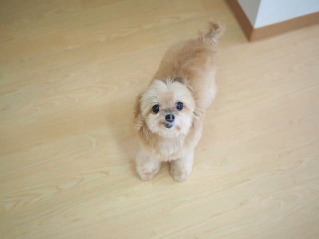 ポメラニアンとチワワのミックス犬なので、脚は細いです。