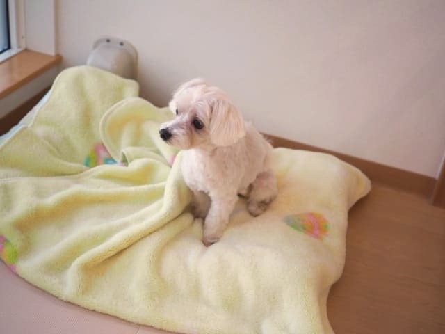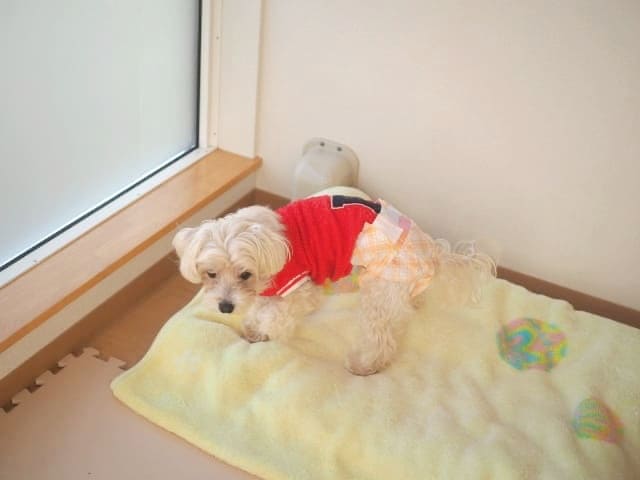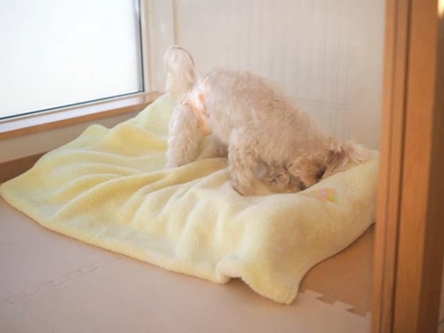 膝の脱臼が心配だったので、部屋を仕切って、滑らない仕様にしたところに入ってもらいました。