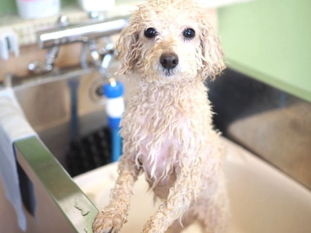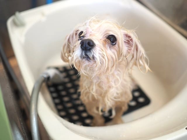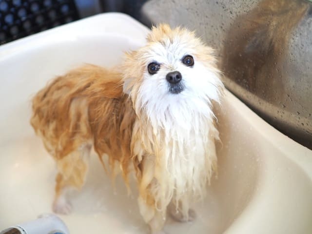 シャンプー前って、くたびれたぬいぐるみのような見た目になる子が多いです。