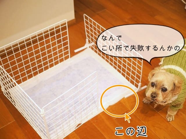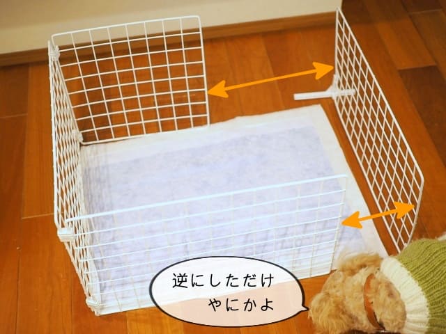 どうしてもトイレシートからはみ出してしまうわんちゃんがいたら、このように囲いを作ってみてはいかがでしょうか。