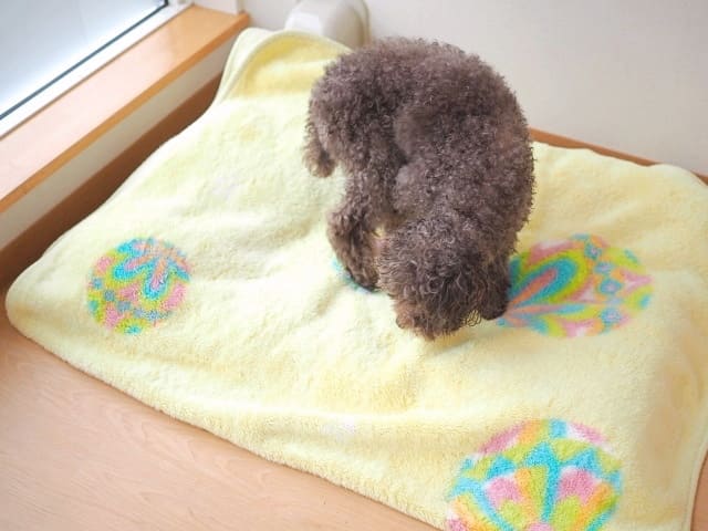 「よーしよしよしよし」と終わったら満足して毛布のところに行ってしまいました。