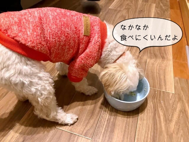 舌のみで頑張って食べるのですが、食べているうちに水分だけ先になくなり、どんどん器に押し付けられます。