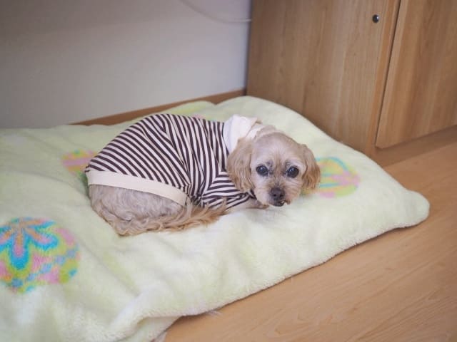 手術を無事終え、安静を経てようやくトリミングOKが出たのでご来店いただきました。