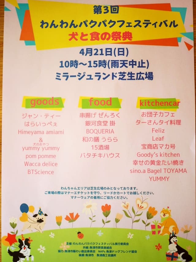 「第3回わんわんパクパクフェスティバルー犬と食の祭典ー」が行われるそうです。