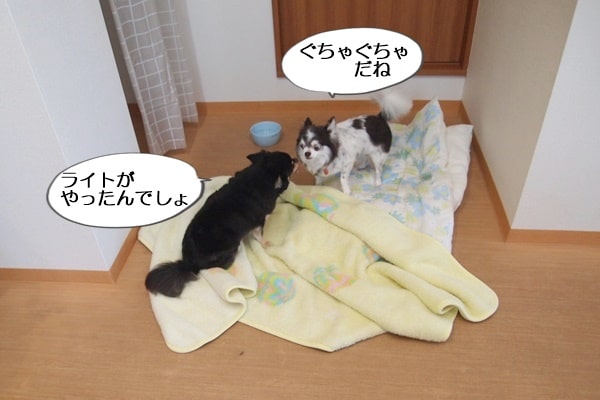 やたら毛布がぐちゃぐちゃですが、犯人はライトちゃんです。