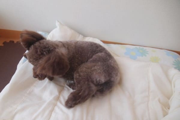 布団の上で、しばらくは落ち着いていましたが、その後もそわそわが止まりません。