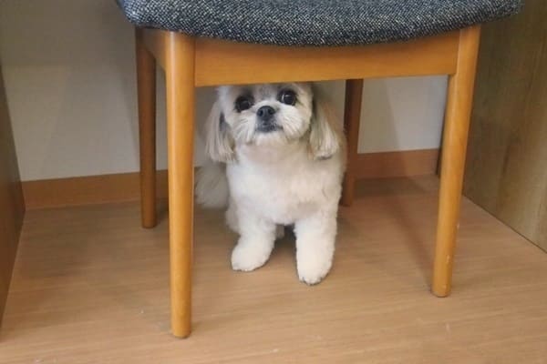 いつもなら机の下が定位置でしたが、今日はやたらとそわそわ。